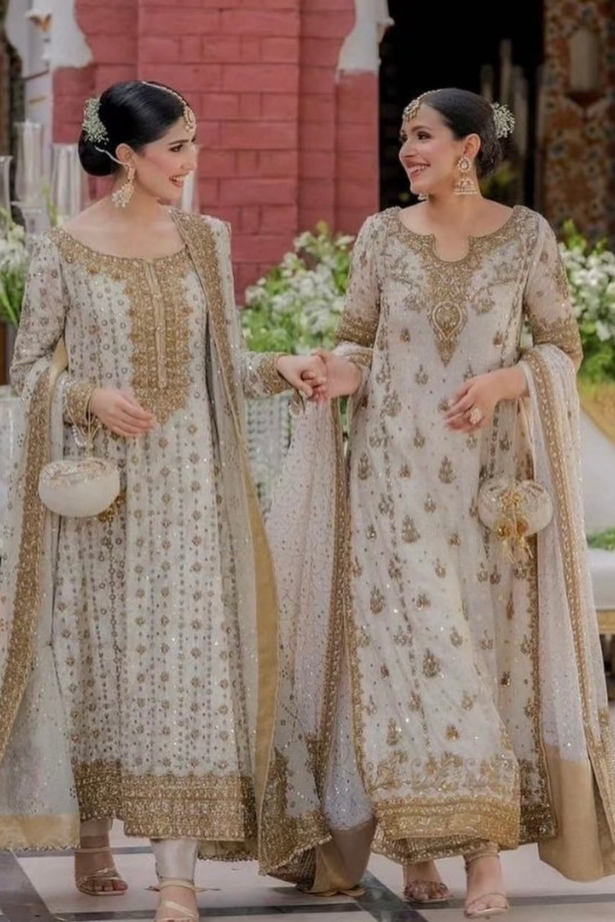 A timeless ivory ensemble featuring exquisite hand embroidery and delicate embellishments on luxurious fabrics, blending classic sophistication with modern silhouettes for weddings and festive occasions.