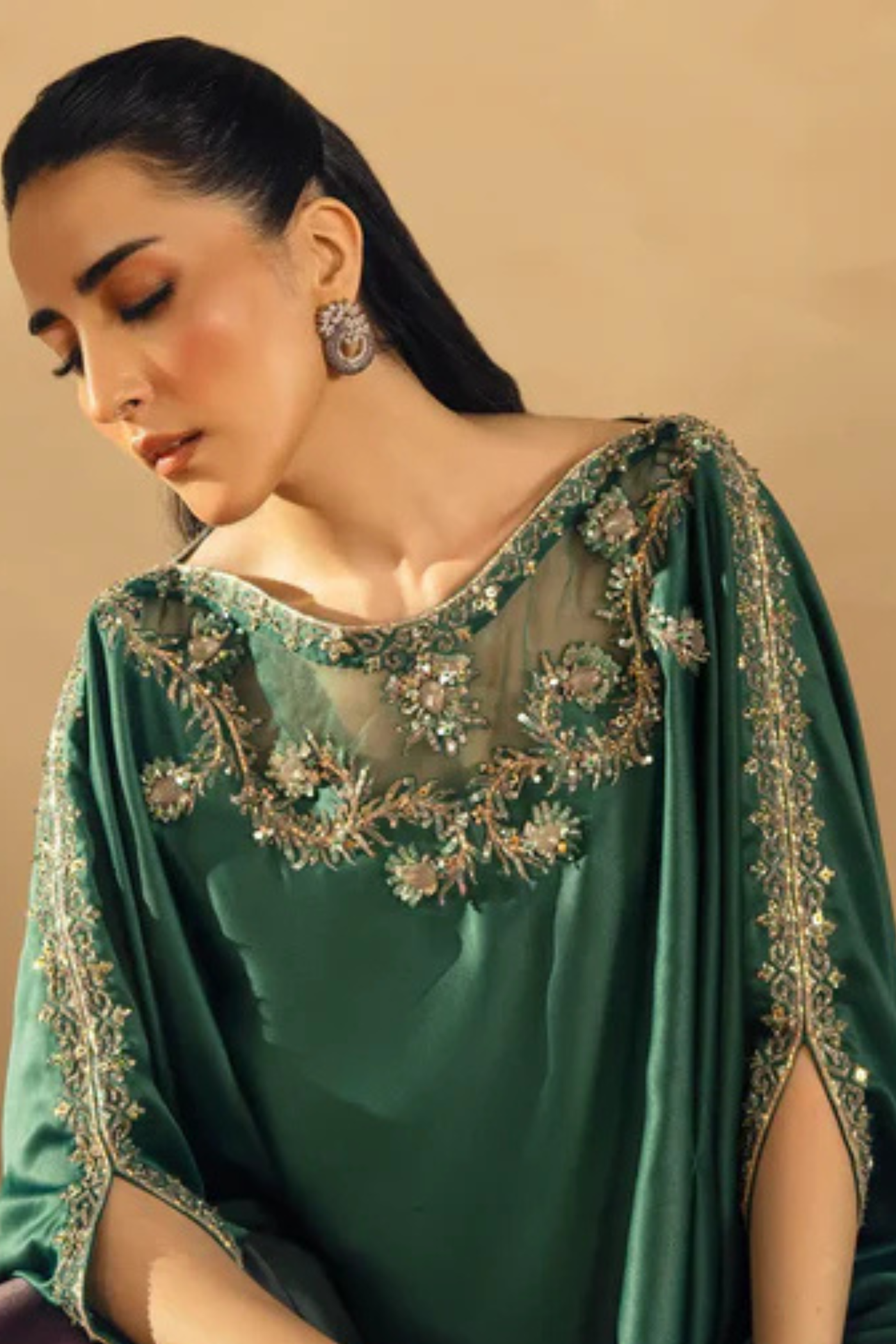 A beautifully crafted 2-piece ensemble featuring a luxurious velvet shirt paired with classic jamawar trousers-designed for timeless elegance and formal sophistication.