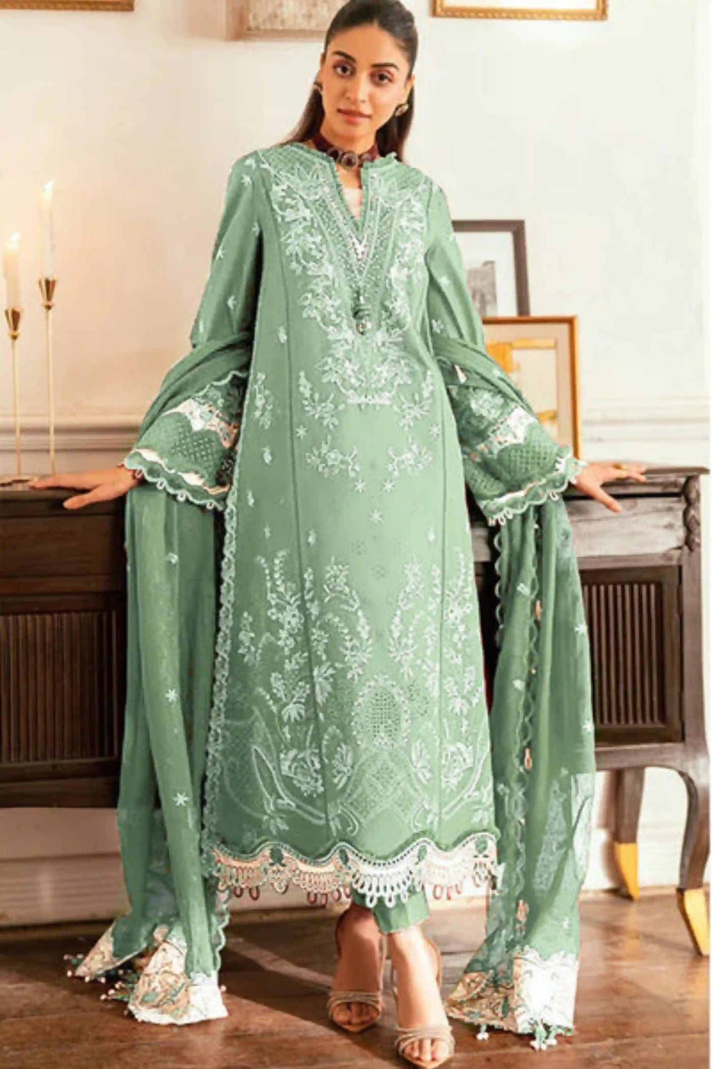 Qalamkar - Lawn SB02 - Mint Green